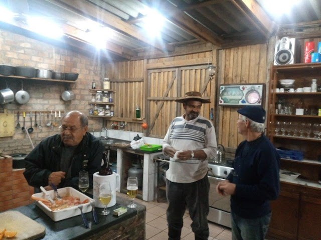 A janta desta quinta foi patrocinada pelo Jorge. Foi servido carne de ovelha assada pelo Fleck, diga-se de passagem muito bem assada, salada de tomate e cebola assada. Estiveram presentes os Amigos: Minhoca, Ivan, Claiton, Tupi, Odilon, Piloto e o Seu Zé.